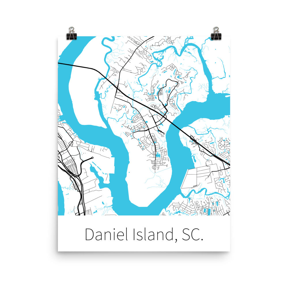 Daniel Island, SC Map Wall Art on Poster, Framed Poster, and