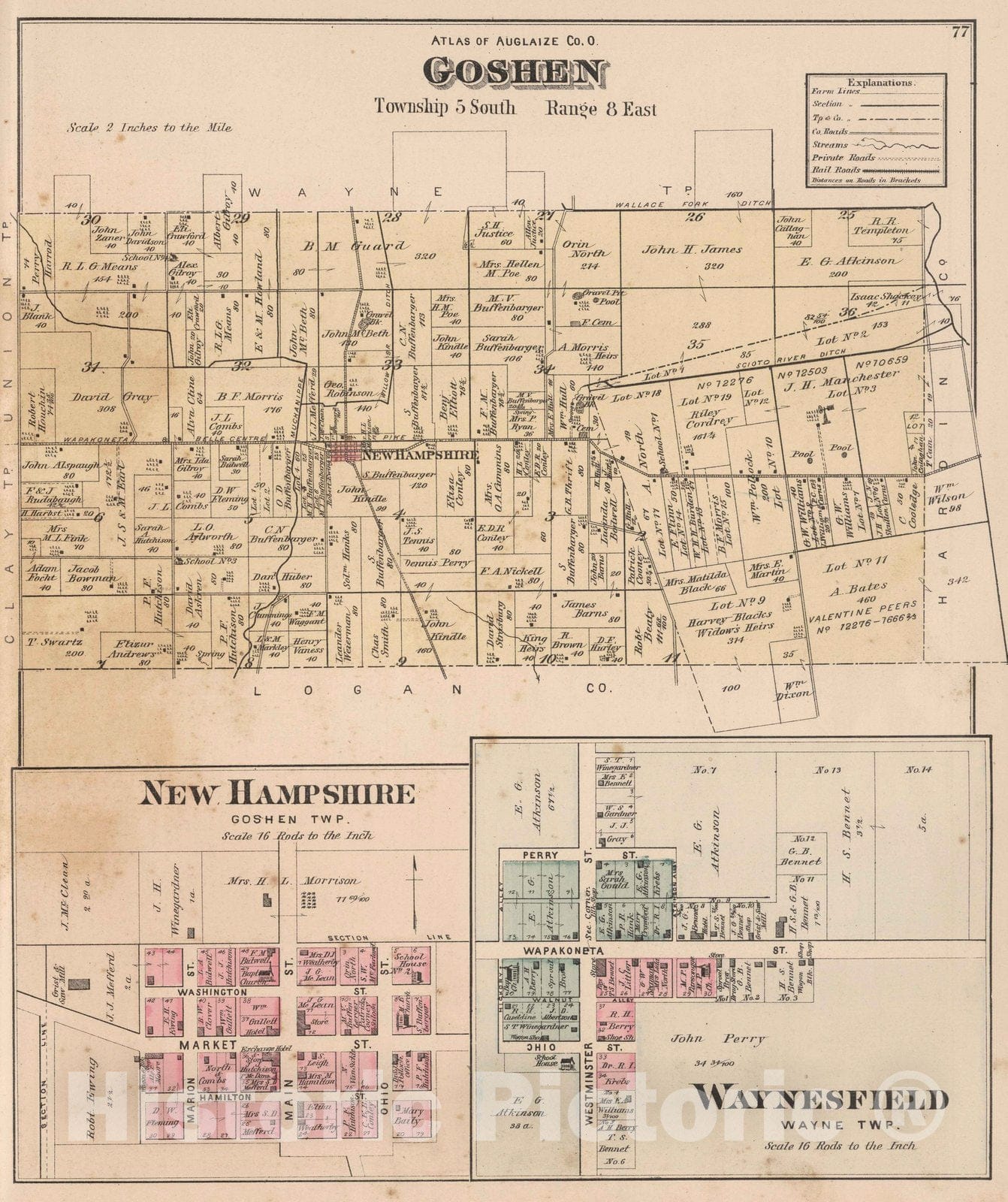Historic Map : 1880 Goshen Township, Auglaize County, Ohio. New