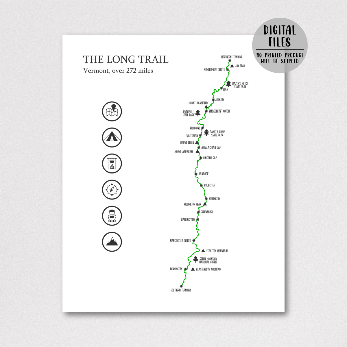 The Long Trail Map | Long Trail Hiking Trail | Hiker Gift Ideas